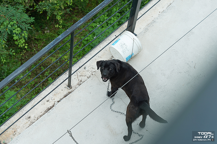 개 짓는 소리가 종종 시끄러운데 수영장 끝에 가서 내려다보니