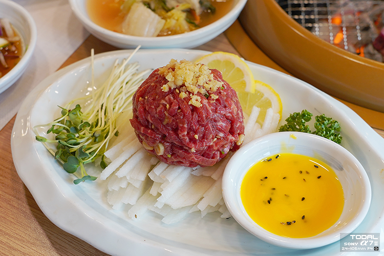 고기 익기 전에 추가 주문한 한우 육회