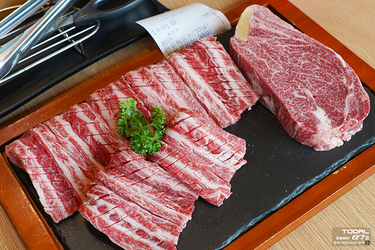 갈비살 25,000 (100g) + 특등심 31,000 (100g)
