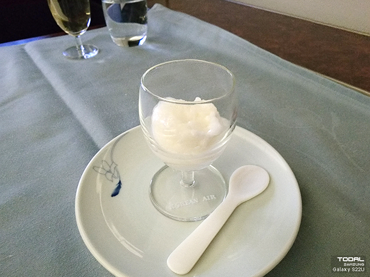 메뉴에는 레몬 바질 셔벗으로 출국 편과 같게 적혀 있었는데 바질은 빠진 듯?