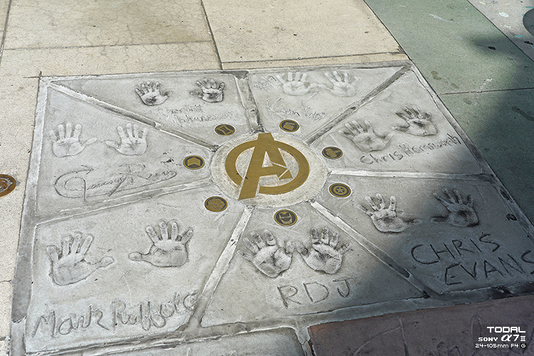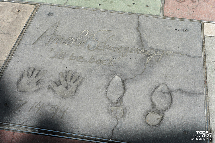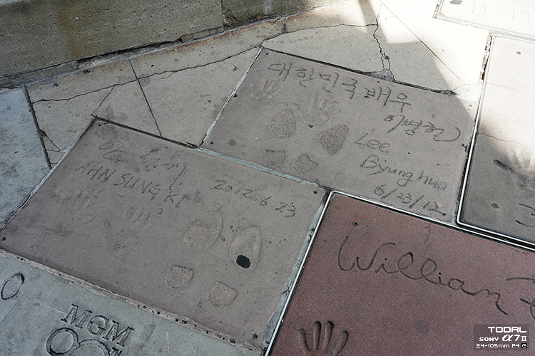 TLC 차이니즈 극장 앞에 있는 배우들 손/발 도장을 구경했다.