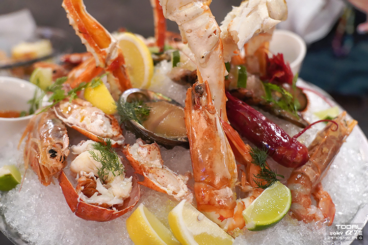 랍스터, 킹크랩, 새우(블랙타이거, 까라비네로, 단새우, 지중해 홍새우), 캐비아, 연어알