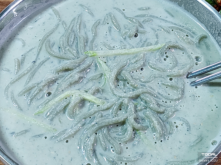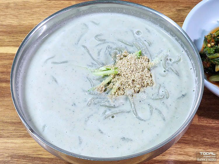 일반 콩국수도 소금이나 설탕을 넣지 않고 먹는데 쑥이 들어있어 그대로 먹기 더 좋다.