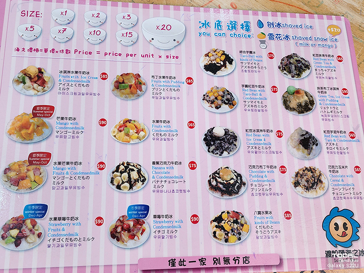 이곳은 명확하게 일반 얼음과 우유 얼음이 구분되어 있고 가격도 다르다.