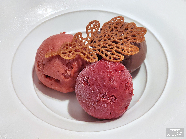 TWG에서 Dennen은 티를 마시고 난 셔벗을 먹었다.
