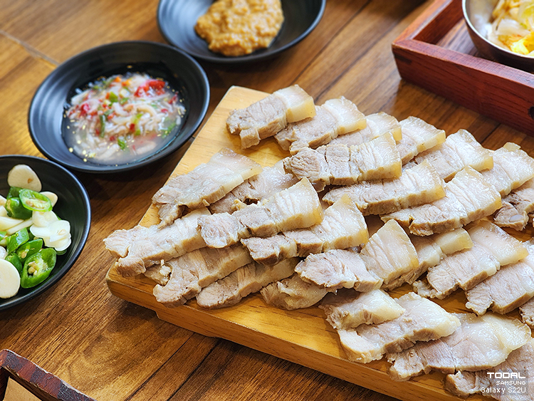 햇빛이 반사돼 더 먹음직스럽게 보이는 돼지수육