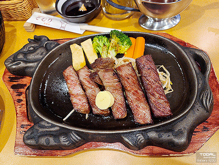 정식 스테이크 메뉴에는 분고규 표시가 있고 120g에 JPY 8,000이 넘기 때문에