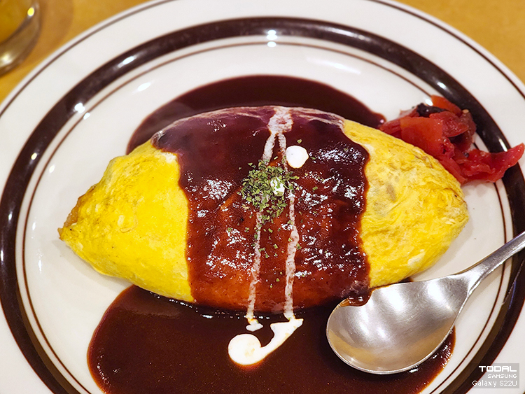 오므라이스 JPY 1,700 (샐러드, 수프, 커피 포함)