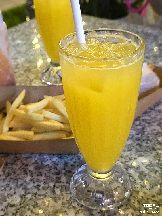 파인애플과 망고 주스였던 것 같은데 둘 다 시원하지 않다.