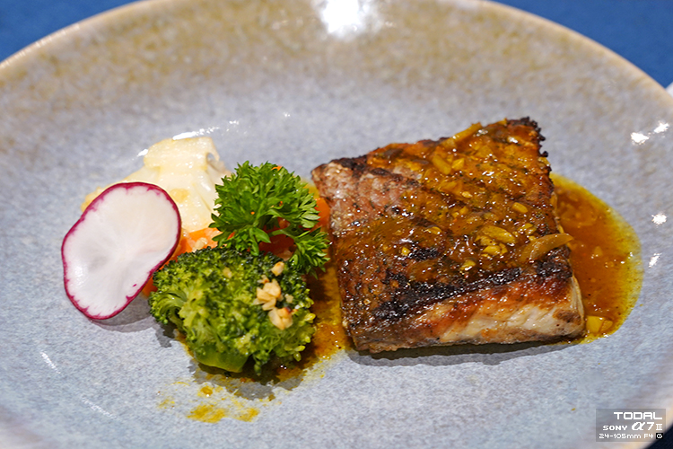 Pan sea Nha Trang seabass with curries sauce and DaLat vegetables