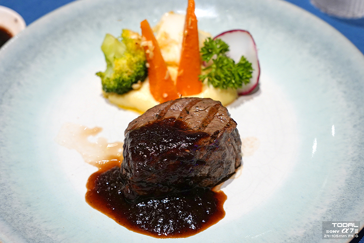 Grilled Beef Tenderloin(140gr) with DaLat vegetables, mashed potato and red wine sauce