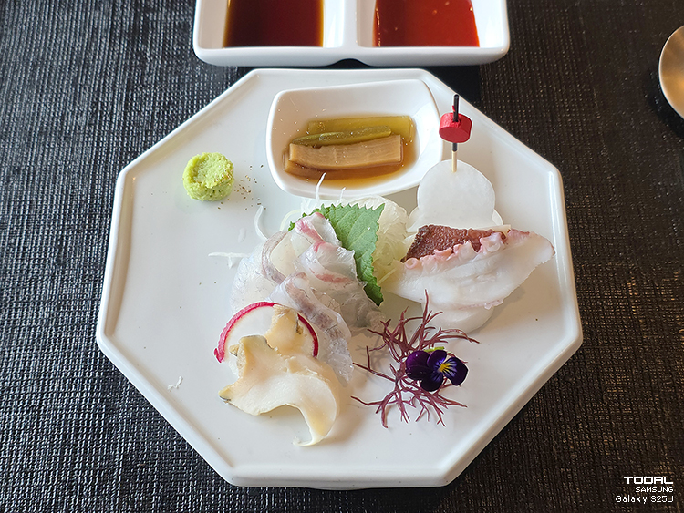 궁채죽순장아찌를 곁들인 모둠어회와 숙회