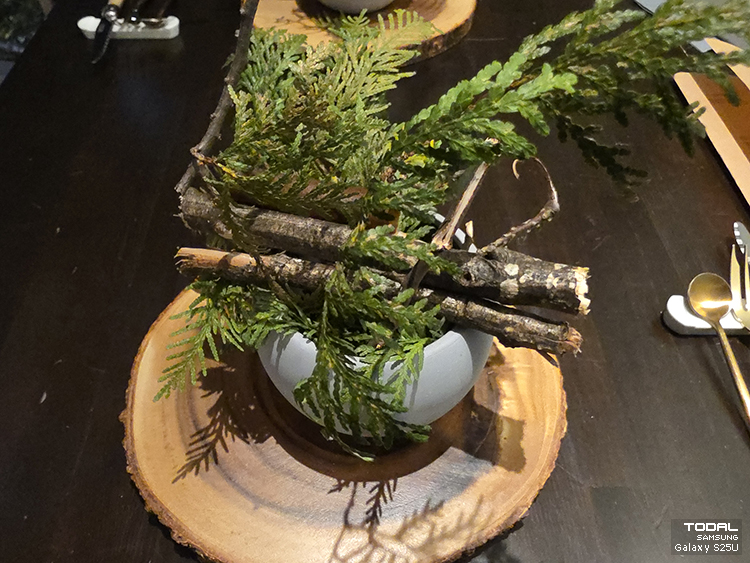 테이블 중앙도 아니고 각자 앞에 장식되어 있어서 처음에는 정교하게 만들어진 요리이거나