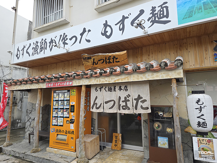 미야코지마에서 유명한 해초인 모즈쿠로 만든 국수를 먹을 수 있는 곳이다.
