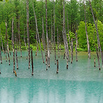 셋째 날은 아사히카와로 이동하는 날이다.일찍 이동하는 것이 좋은데 아침을사에라(さえら)에서 먹기 위해 늦출 수밖에 없었다. 빠른 이동을 위해 호텔에 들르지 않고 바로 비에이의준페이(洋食とcafeじゅんぺい)에서 점심을 먹은 후 청의 호수로 이동 오늘부터는 비가 그친다고 했었는데 그사이에 또 예보가 바뀌었다. 청의 호수(青い池, 아오이이케)주차장 들어가는 길에 평탄화 작업 좀 해야 할 듯 한 곳에서 보지 않고 호숫가를 계속 걸어가면서 볼 수 있게 되어 있다. 가운데 중심이 되는 굵은 나무 중간쯤 가면 가장 넓게 호수가 보인다. 어떤 방향에서 보면 나무들이 줄에 딱 맞게 서 있음을 알 수 있다.사람이 심어 놓은 나무인가? 천으로 합류되는 곳이 가장 푸르다. 청의 호수에서 멀지 않은 곳에 있는흰 수염 폭포(しら..